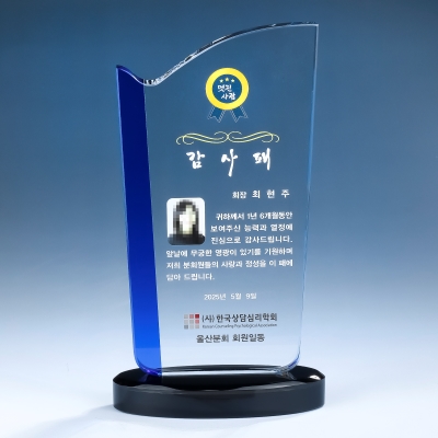 | 기타사항 | 1. 작업진행시 상패 특성상 수정은 절대 불가합니다. 2. 크리스탈상패 기본 글씨는 흰색입니다. 다른 색상을 원하실 경우 꼭 담당자에게 말씀해주세요. 3. 모니터 화면상으로 보는 색감은 실제 인쇄된 제품과 차이가 있을 수 있습니다. 4. 상패는 주문제작 상품이므로 반품, 교환은 불가능합니다. (*제품 출고전 취소제품도 동일하게 비용 청구됩니다.) 5. 시안 확인 작업진행 후 오,탈자는 당사에서 책임지지 않으니 꼼꼼하게 시안 확인 부탁드립니다. 6. 제품 발송의 경우 착불발송이 원칙입니다. 선불택배를 원하시는 경우 담당자에게 말씀해주세요. ※ 최종작업은 마지막 시안으로 작업되오니 마지막 시안으로 작업이 아닐경우 담당자와 꼭 협의 바랍니다. |