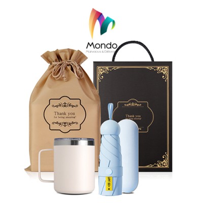 MONDO몬도 텀블러 선물세트 360ml스텐머그컵 1개+5단미니파우치 우산 1개 기프트세트
