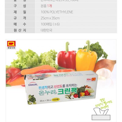 | 규격 | 25cm*35cm 100매 | 색상 | 불투명 |