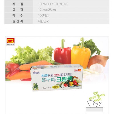 | 규격 | 17cm*25cm 100매 | 색상 | 불투명 |