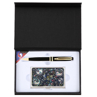 워터펜블랙+한글태극자개명함케이스 외국인 손님 친구 선물 기념품
